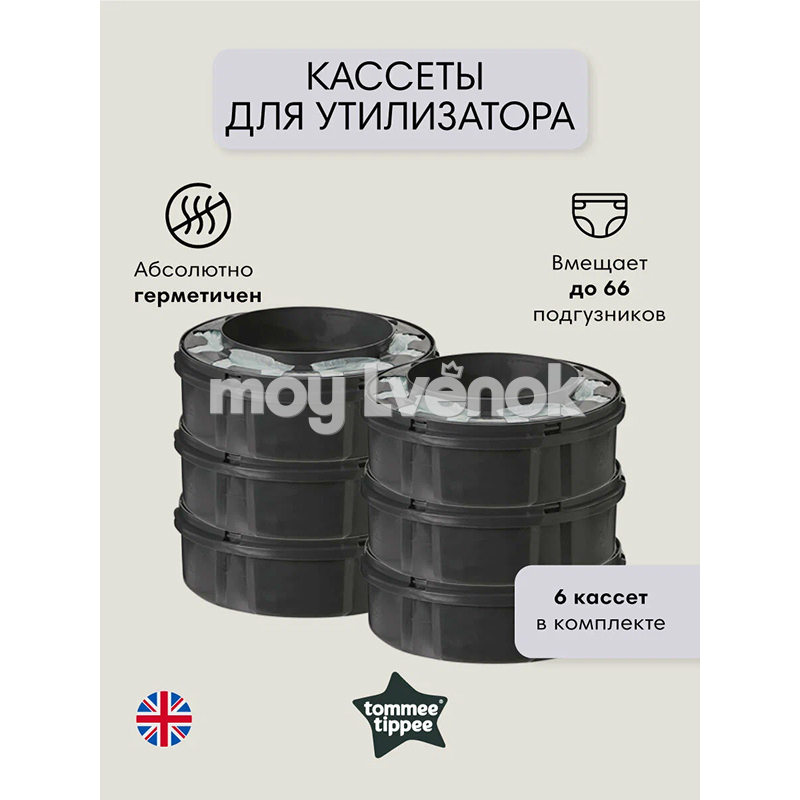 Tommee Tippee кассеты (6 шт.) для утилизатора, накопителя для подгузников Twist & Click