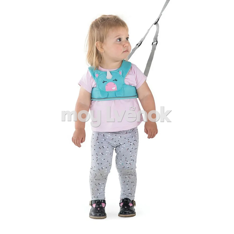 - Изделие выполнено в виде жилетки в голубом цвете, благодаря чему малыш будет удерживаться под ручками и не упадет вперед.