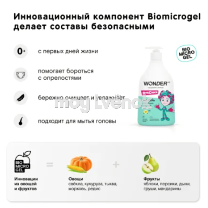 В основе экологичного средства для детей - инновационный компонент Biomicrogel®, который сделан из овощей и фруктов.